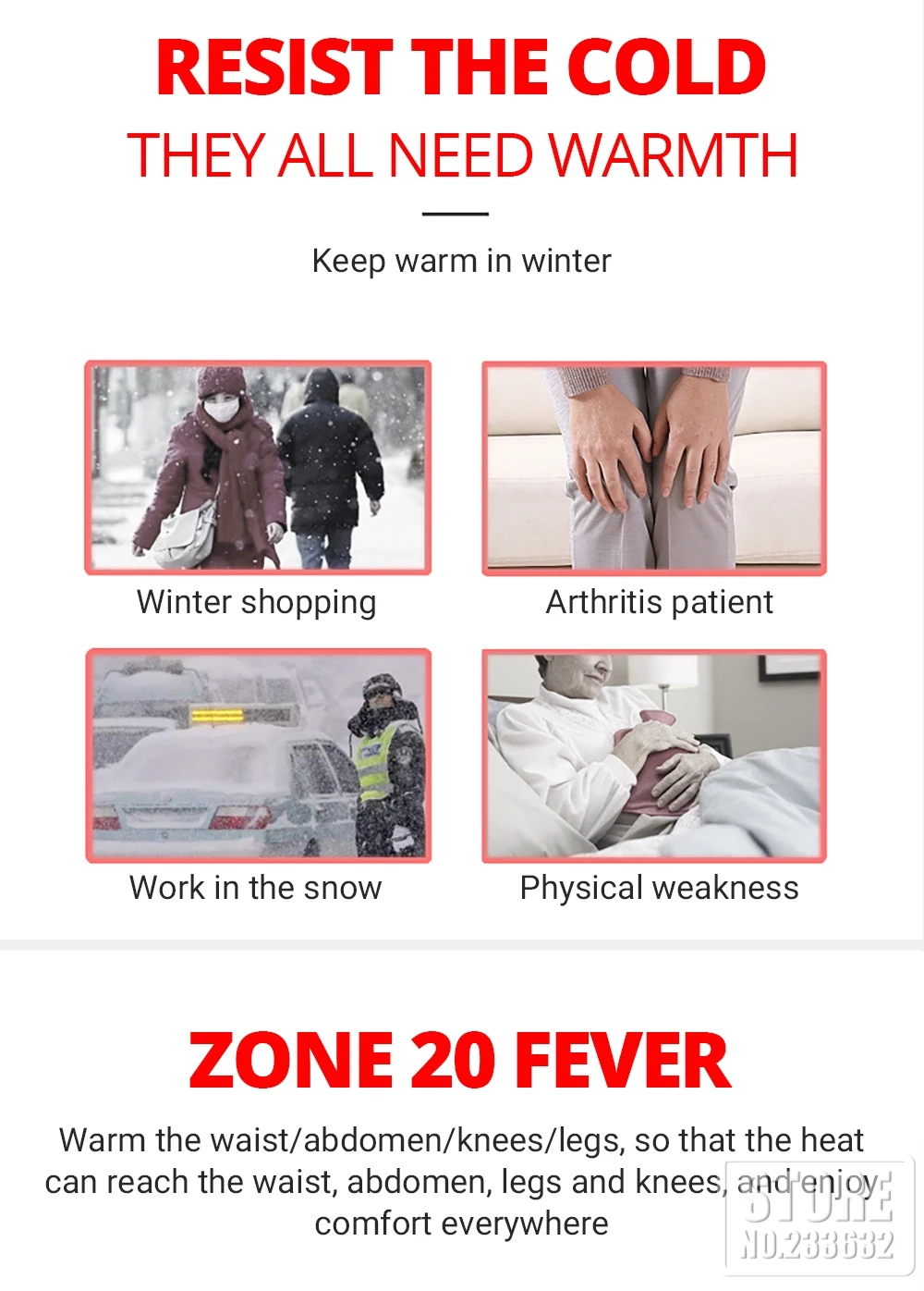 Heating underwear helps to improve blood circulation, enhance metabolism, which is very suitable for people who are afraid of cold, Raynaud’s disease, arthritis, poor blood circulation, and stiff joints.